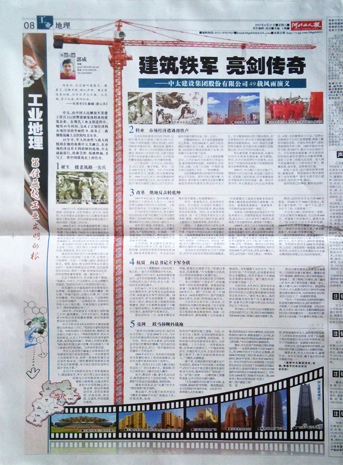 “人馬未歇的中太扛著‘打中太牌、走全國路、謀海外財(cái)’的軍旗,一路高歌猛進(jìn),全力征戰(zhàn)國內(nèi)外建筑市場。無論是平沙莽莽黃入天的新疆戈壁,風(fēng)吹草低見牛羊的內(nèi)蒙草原,還是吳儂軟語的江南水鄉(xiāng),群雄逐鹿的人文中原,抑或北非地中海沿岸等地到處都活躍著中太人的身影。”中太總裁張明禮娓娓道來。