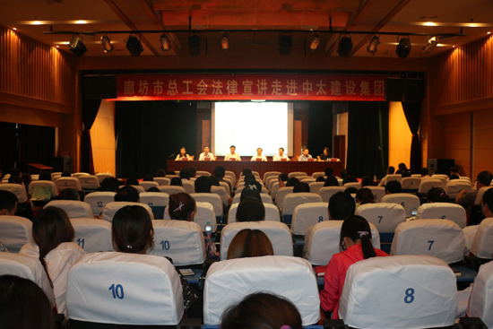為深入開(kāi)展“兩學(xué)一做”學(xué)習(xí)教育活動(dòng),搭建工會(huì)與企業(yè)的橋梁,營(yíng)造依法治企的健康發(fā)展氛圍,6月3日下午,廊坊市總工會(huì)“送法進(jìn)企”法律宣講團(tuán)(廊坊市總工會(huì)黨組書(shū)記、常務(wù)副主席劉志宏,黨組成員、副主席田惠蘭,黨組成員、副主席李健,副調(diào)研員、辦公室主任李寶秋,辦公室副主任連錦,辦公室科員崔鈺)一行6人走進(jìn)中太建設(shè)集團(tuán)。市總工會(huì)邀請(qǐng)廊坊市人民政府法律顧問(wèn)、廊坊市總工會(huì)法律顧問(wèn)、河北張克鋒律師事務(wù)所主任張克鋒進(jìn)行授課,依托合同法、建筑法,結(jié)合實(shí)際案例,就圍繞如何維護(hù)企業(yè)形象,保護(hù)企業(yè)與個(gè)人利益,依法治企,不受侵害損失,為大家?guī)?lái)一場(chǎng)實(shí)實(shí)在在的法律知識(shí)講座。中太建設(shè)集團(tuán)董事長(zhǎng)、黨委書(shū)記李文健等集團(tuán)公司在家的領(lǐng)導(dǎo)出席活動(dòng);市總工會(huì)辦公室副主任連錦主持“送法進(jìn)企”宣講活動(dòng)。