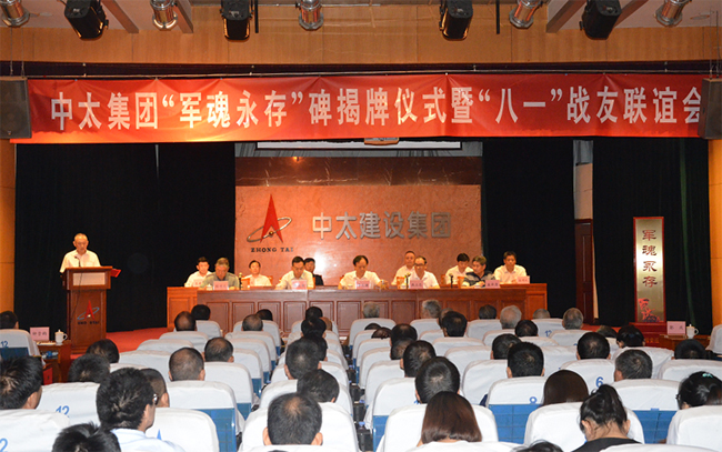 2018年7月26日上午,久違而清脆的集合號在中太大廈二樓報(bào)告廳久久回蕩,拉開了中太集團(tuán)“軍魂永存”碑揭牌儀式暨慶“八一”戰(zhàn)友聯(lián)誼會的序幕。中太集團(tuán)在廊各單位部分員工、機(jī)關(guān)各部門的全體員工和軍轉(zhuǎn)工在崗與退休戰(zhàn)友代表共180多人,著裝整齊,嚴(yán)陣以待,期待這一莊嚴(yán)時刻的到來。