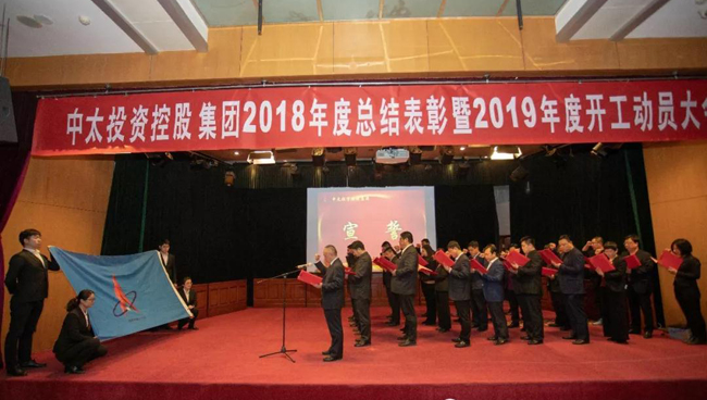 2019年2月22日上午8時30分,中太大廈報告廳精英齊聚,座無虛席,隆重舉行中太投控股集團2018年度總結表彰暨2019年開工動員大會。