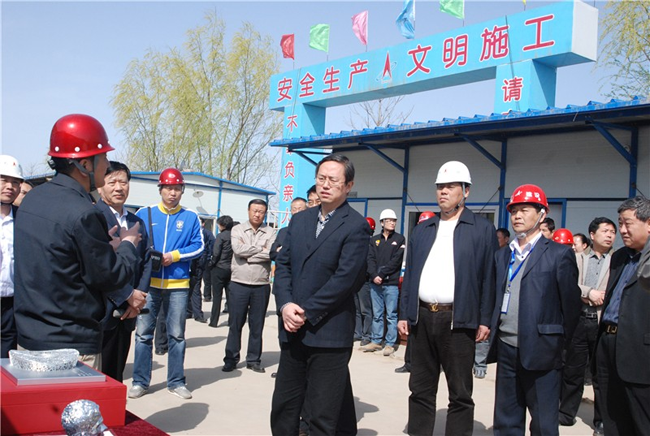 集團(tuán)總裁張明禮(前右3)陪同趙世洪書記(前右4)在現(xiàn)場考察