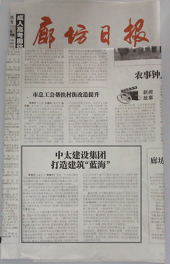 廊坊日報報道了中太建設集團打造建筑“藍海”