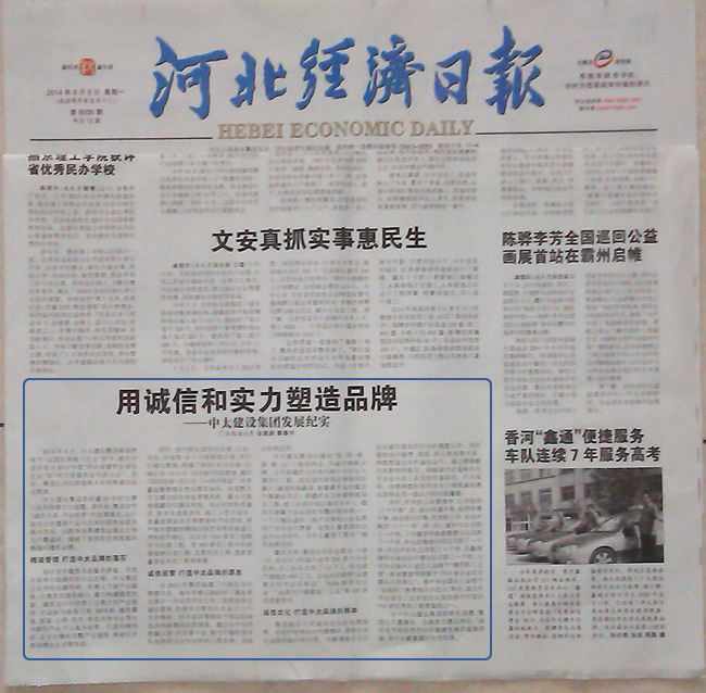 河北經(jīng)濟日報報道了中太建設(shè)集團用誠信和實力塑造品牌