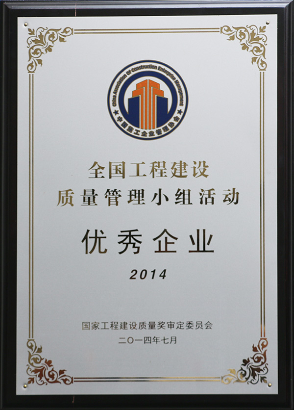 全國工程建設(shè)質(zhì)量管理小組活動優(yōu)秀企業(yè)