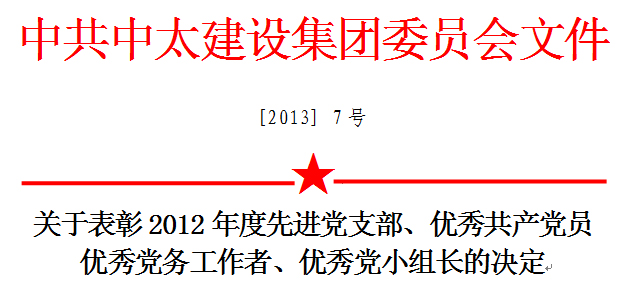 關于表彰2012年度先進黨支部、優秀共產黨員優秀黨務工作者、優秀黨小組長的決定