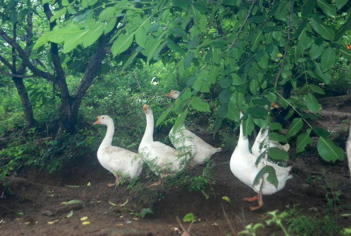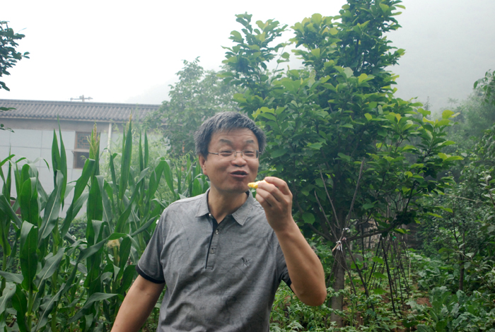 據(jù)第八工程局工作人員介紹,此采摘處約有20畝果樹林地。山上種植著杏兒、桃兒和核桃。山下院內(nèi)菜園里,種植著施用農(nóng)家肥的各類時蔬和植物。以蟲兒、草兒為食、自由散養(yǎng)的雞鴨悠閑漫步在山林中,好一派恬靜如詩、優(yōu)美如畫的田園風光。
